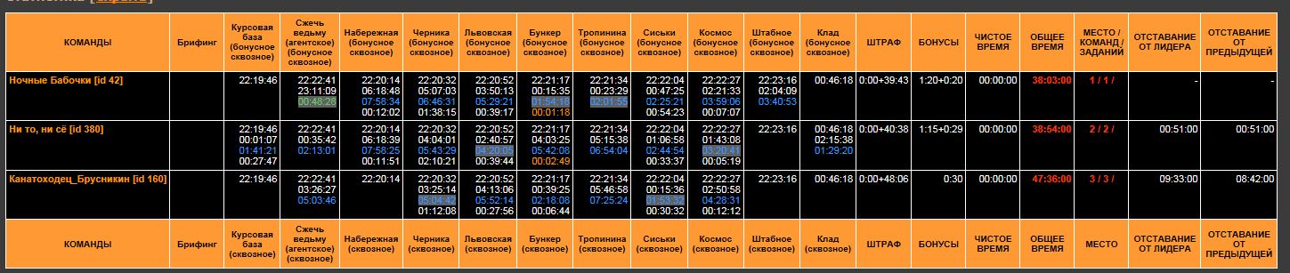 Команде Ночные Бабочки начислен штраф 2363 мин. за суммарное время прохождения уровней